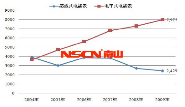 據(jù)中國儀器儀表行業(yè)協(xié)會(huì)電工 儀器儀表分會(huì)統(tǒng)計(jì),2005年電子式電能表產(chǎn)量達(dá)4,725萬臺(tái),首次超過感應(yīng)式電能表產(chǎn)量,到2009年電子式電能表產(chǎn)量增至7,975萬臺(tái),而感應(yīng)式 電能表產(chǎn)量降至2,429萬臺(tái)。2010年電工儀器儀表行業(yè)產(chǎn)量同比增長19%以上;銷售收入同比增長22%以上。