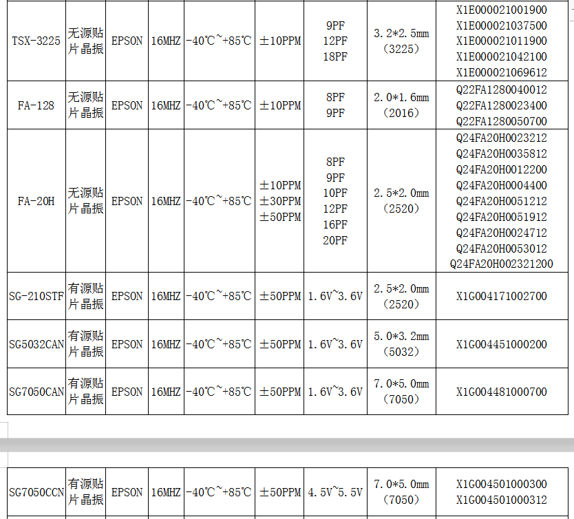 以上就是愛普生16mhz晶振的一些常用型號,除了以上16m貼片晶振以外,南山電子還提供其他各種型號有源晶振無源晶振,時鐘芯片模塊,溫控晶振,陀螺儀傳感器等,歡迎各位新老客戶來電垂詢,或者直接到我們南山電子某寶店——南山E店直接購買。