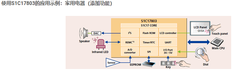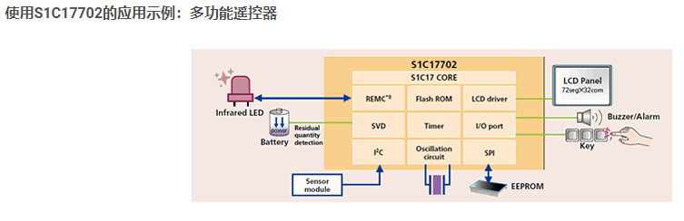 16位微控制器之S1C17000 / 500系列,這是一款低功耗16位微控制器,集成了ROM,RAM,遠程控制器電路,各種I / F和定時器功能。它適用于便攜式設(shè)備內(nèi)置的傳感器系統(tǒng)。