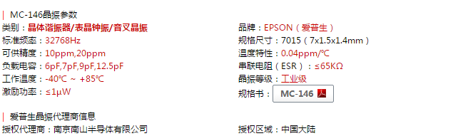 今天給大家介紹下MC-146,MC-146屬于32.768KHz晶體,常用的熱銷(xiāo)負(fù)載電容有7pf,9pf,12.5pf等,其本身主要應(yīng)用在時(shí)鐘控制產(chǎn)品,或者是控制模塊,主要給時(shí)鐘芯片提供一個(gè)基準(zhǔn)信號(hào),MC-146具有優(yōu)良的耐熱性,耐環(huán)境特性,可發(fā)揮晶振優(yōu)良的電氣特性,MC-146規(guī)格上具有較小的尺寸和串聯(lián)電阻,基于EPSON高端QMEMS技術(shù),使晶振性能穩(wěn)定可靠,適用于各類(lèi)對(duì)品質(zhì)要求較高的小型電子設(shè)備中如消費(fèi)類(lèi)設(shè)備,無(wú)線電設(shè)備,血壓計(jì),血糖監(jiān)測(cè)儀和安全系統(tǒng)應(yīng)用中的應(yīng)用處理器,MC-146已經(jīng)廣泛應(yīng)用在各個(gè)電子領(lǐng)域,比如:工業(yè)控制,信息通訊,智能網(wǎng)絡(luò),各類(lèi)消費(fèi)產(chǎn)品等。南山半導(dǎo)體為您精心整理出MC-146規(guī)格,參數(shù)。熱銷(xiāo)型號(hào)如下圖所示: