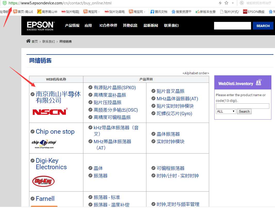在EPSON晶振詞條中,明確說明在大陸地區(qū)有少數(shù)晶振代理商,如南京南山半導體,當然詞條可以編輯,,但是百度會去根據(jù)你提交的參考資料然后嚴格審核認證,那么我們就來看看,愛普生官網(wǎng)的查詢結(jié)果: