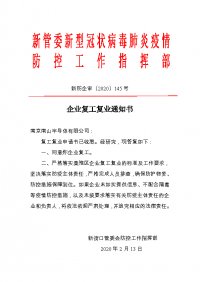 為支持重點客戶的有序生產(chǎn),南京南山半導體有限公司于2020年2月13日收到南京市新街口管理委員會(新管委)新型冠狀病毒肺炎疫情 防控工作指揮部通知,在2月14日復工。 暫定工作時...