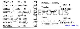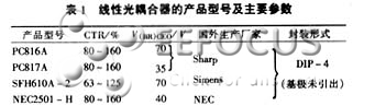 線性光耦合器的典型產(chǎn)品及主要參數(shù)見表1,這些光耦均以光敏三極管作為接收管。