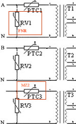 熱敏電阻和T1初級串聯(lián)的回路中的電流為電表正常的電流。當(dāng)輸入電壓變大時(一般是接地故障),熱敏電阻和T1初級串聯(lián)的回路中的電流也將變大,當(dāng)此電流達(dá)到或超過熱敏電阻的動作電流時,熱敏電阻將動作,熱敏電阻阻值會變大,而阻值變大的速度取決于此時電流的大小,電流越大,速度越快。當(dāng)熱敏的阻值變大時,由歐姆定律I=U/R,可以得出整個回路的電流將變小。