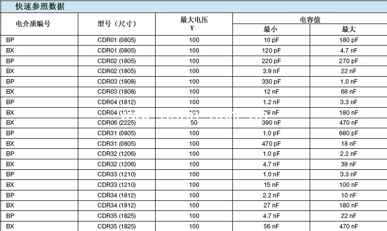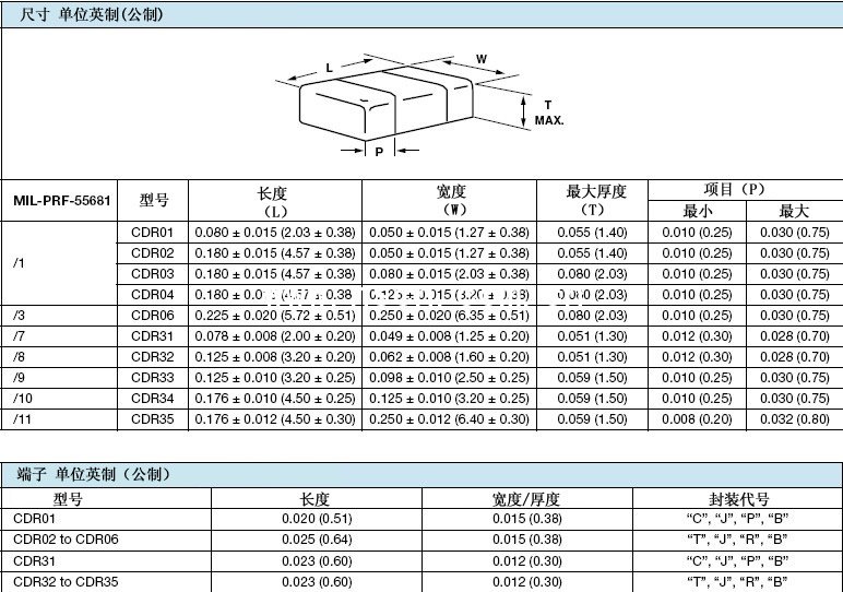 Vishay CDR-MIL-PRF-55681多層陶瓷貼片電容規(guī)格(中文)