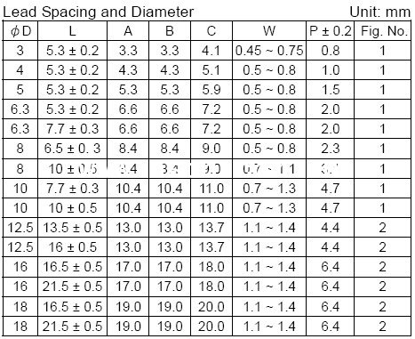 | 尺寸型號(hào) | 3~10 | 12.5~18φ | 12.5~18φ |